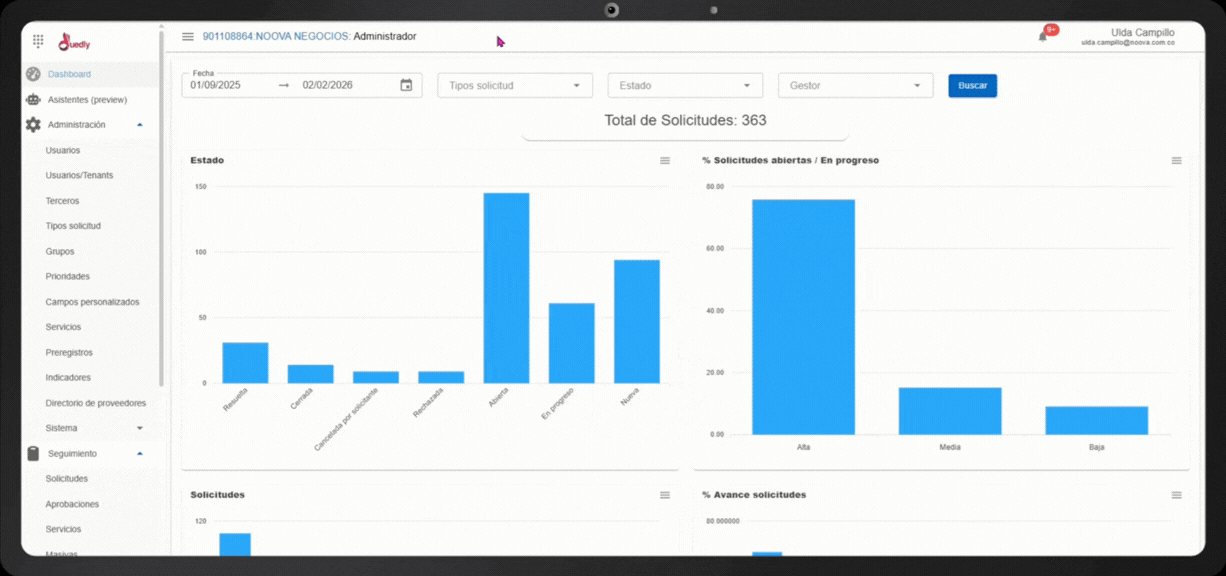Ves avances, retrasos, costos y resultados con indicadores en tiempo real.