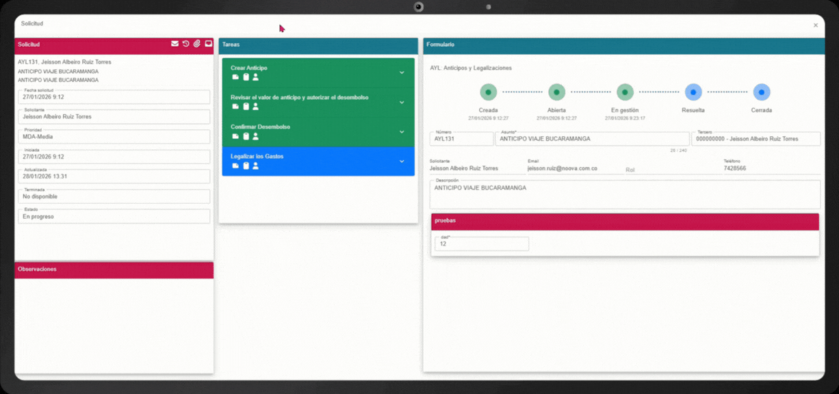 Cada solicitud inicia un flujo de trabajo (workflow) definido según tu negocio.